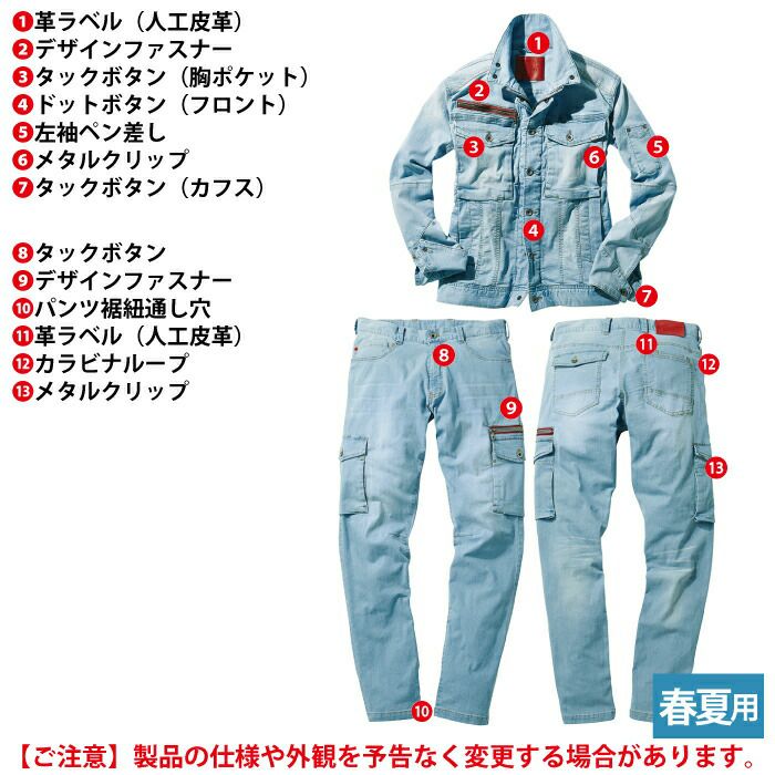 レッドファスナーが映えるモダンフィットモデル バートル BURTLE 作業着 上下セット 7041 と 7042 ジャケットセットアップ 作業服 おしゃれ 春夏 吸汗速乾 清涼感 作業ズボン