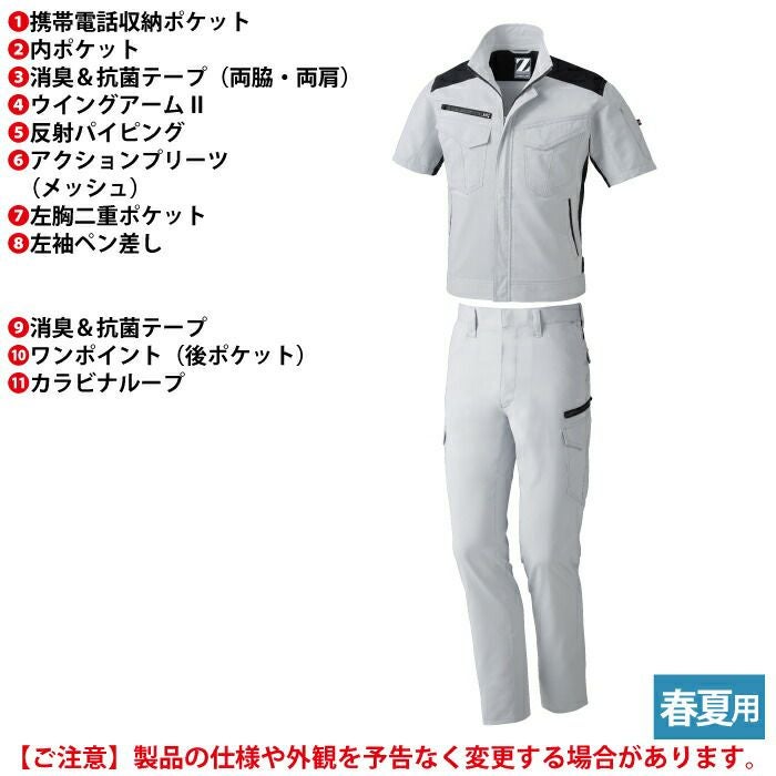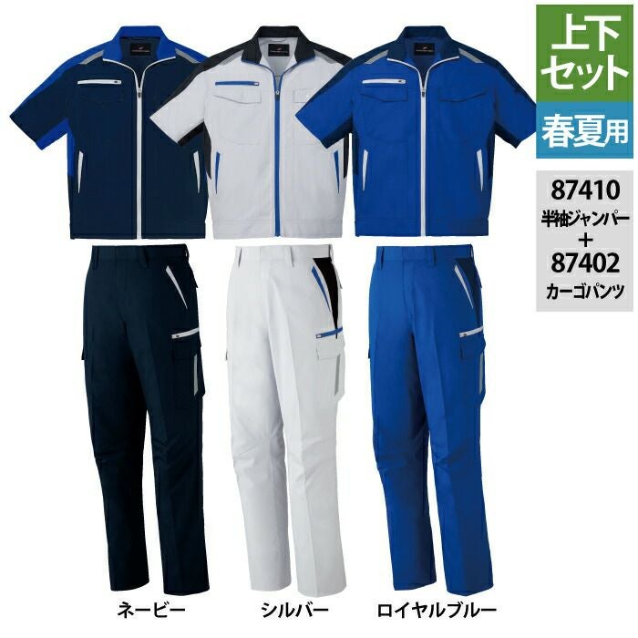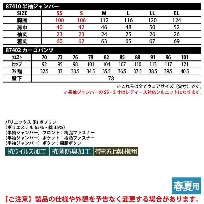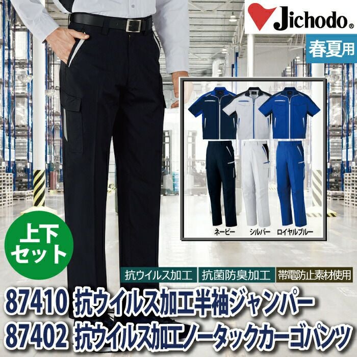自重堂 作業服 作業着 作業ズボン 自重堂 作業服 上下セット 87410 抗ウイルス加工半袖ジャンパー と 87402 抗ウイルス加工ノータックカーゴパンツ SS-LL 春夏用 おしゃれ 作業着