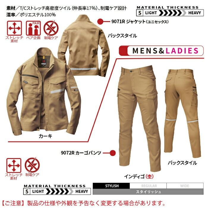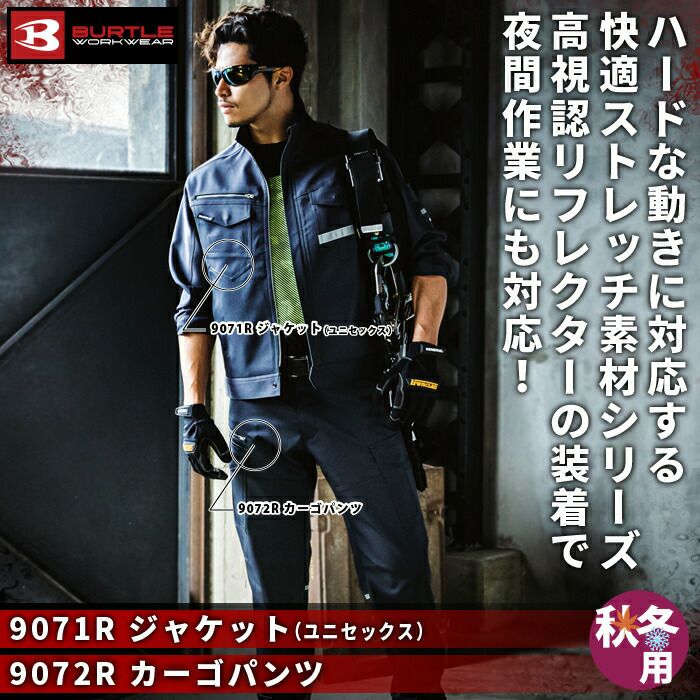 作業服 作業着 バートル ブルゾン 秋冬用 バートル BURTLE 作業着 上下セット 9071Rジャケット と 9072Rカーゴパンツ 作業服 おしゃれ 秋冬 JIS適合制電 反射板 作業ズボン