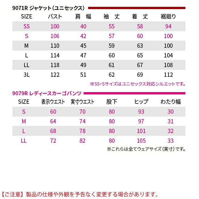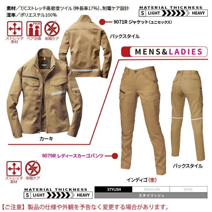 作業服 作業着 バートル ブルゾン 秋冬用 バートル BURTLE 作業着 上下セット 9071R ジャケット と 9079R レディースパンツ SS-LL 作業服 おしゃれ 秋冬