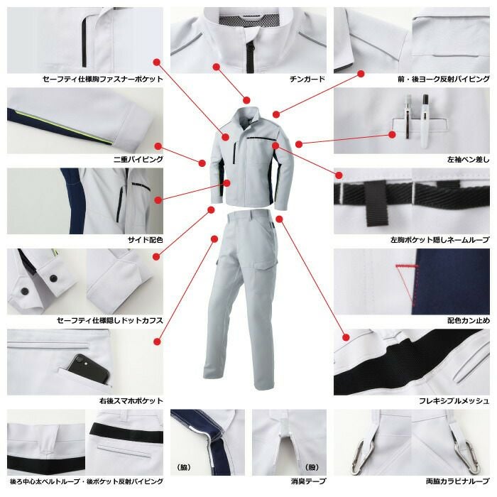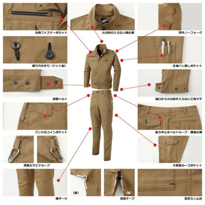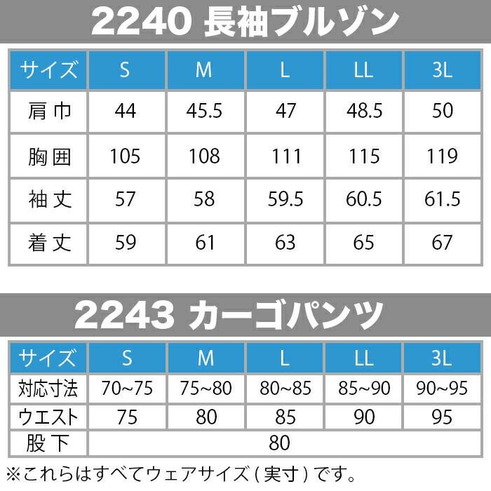 ジーベック XEBEC 作業服 作業着 作業ズボン ジーベック XEBEC 作業服 上下セット 2240 長袖ブルゾン と 2243 カーゴパンツ S-LL オールシーズン 作業着 ズボン