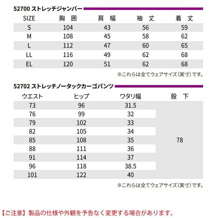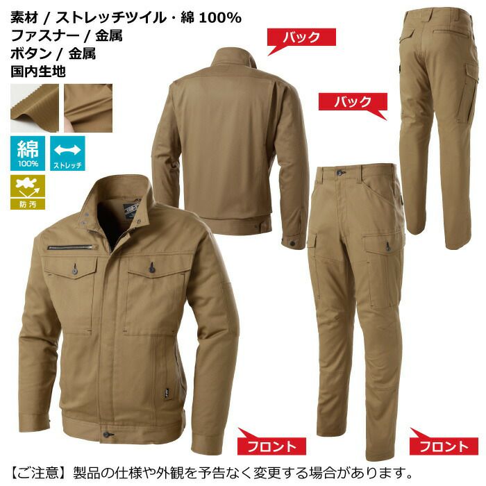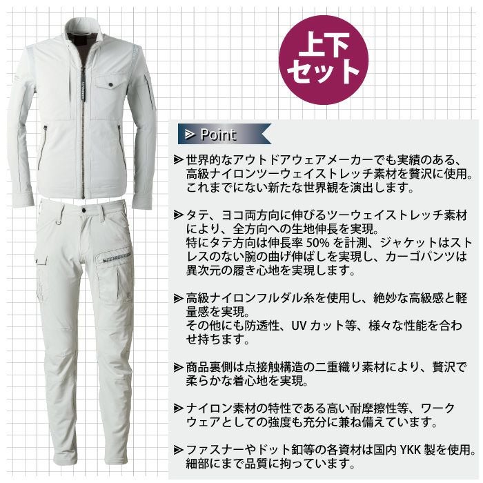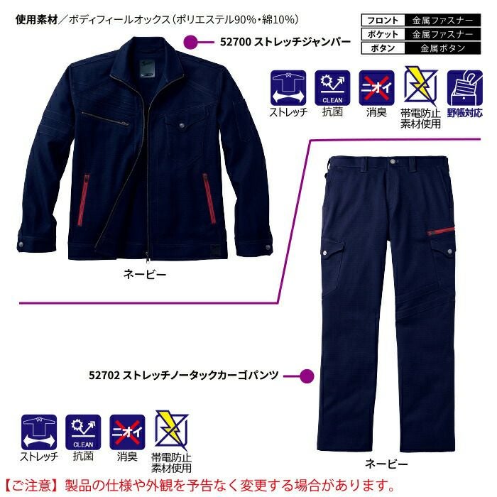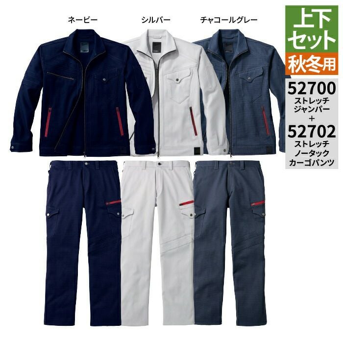 自重堂 作業服 作業着 作業ズボン 自重堂 作業服 上下セット 52700 ストレッチジャンパー と 52702 ストレッチノータックカーゴパンツ S-LL 秋冬用 かっこいい おしゃれ 作業着