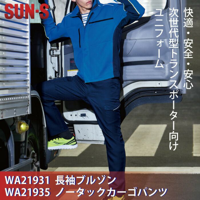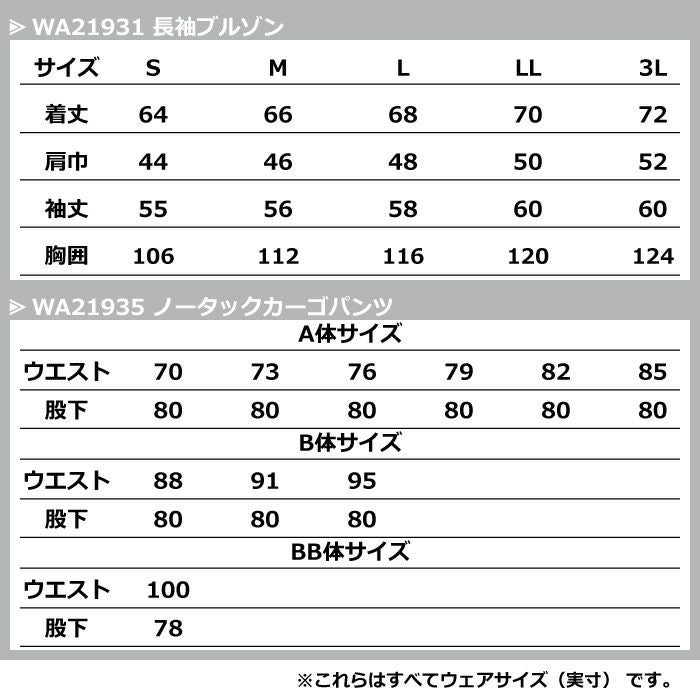 サンエス 作業服 作業着 作業ズボン サンエス 作業服 上下セット WA21931 長袖ブルゾン と WA21935 ノータックカーゴパンツ S-LL オールシーズン かっこいい おしゃれ ズボン 作業着