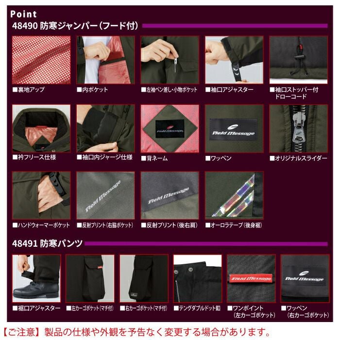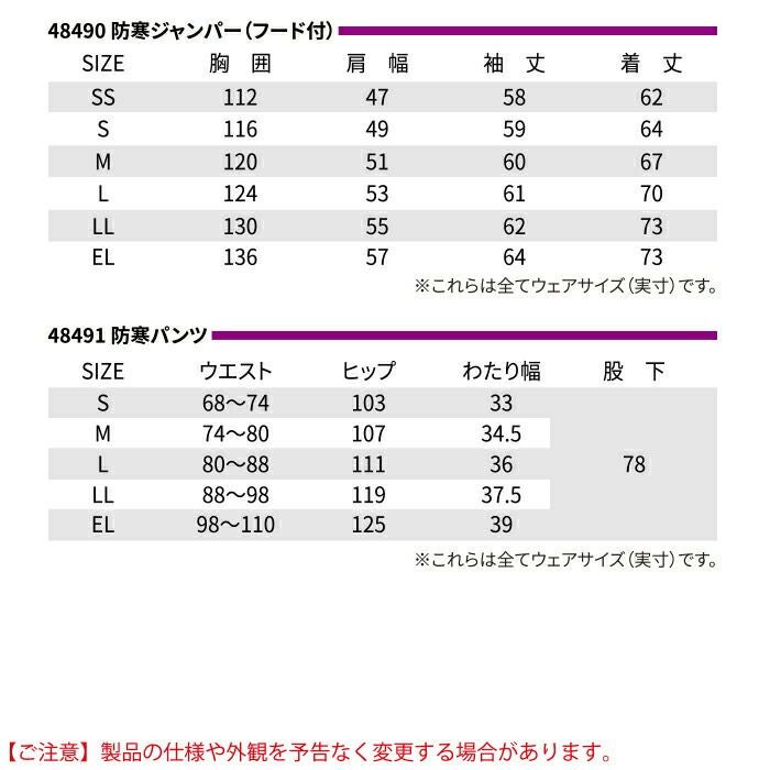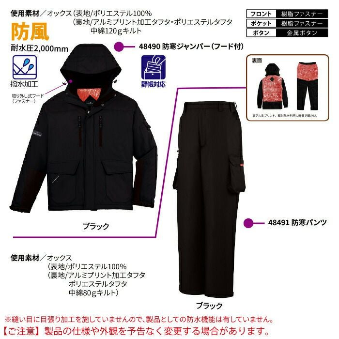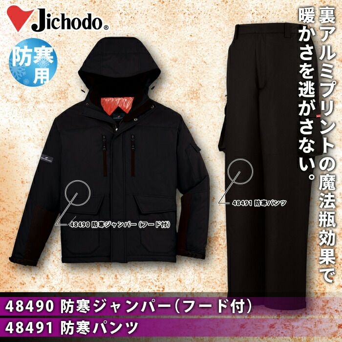自重堂 作業服 作業着 作業ズボン 自重堂 作業服 上下セット 48490 防寒ジャンパー(フード付) と 48491 防寒パンツ SS-LL 秋冬用 かっこいい おしゃれ ズボン 作業着