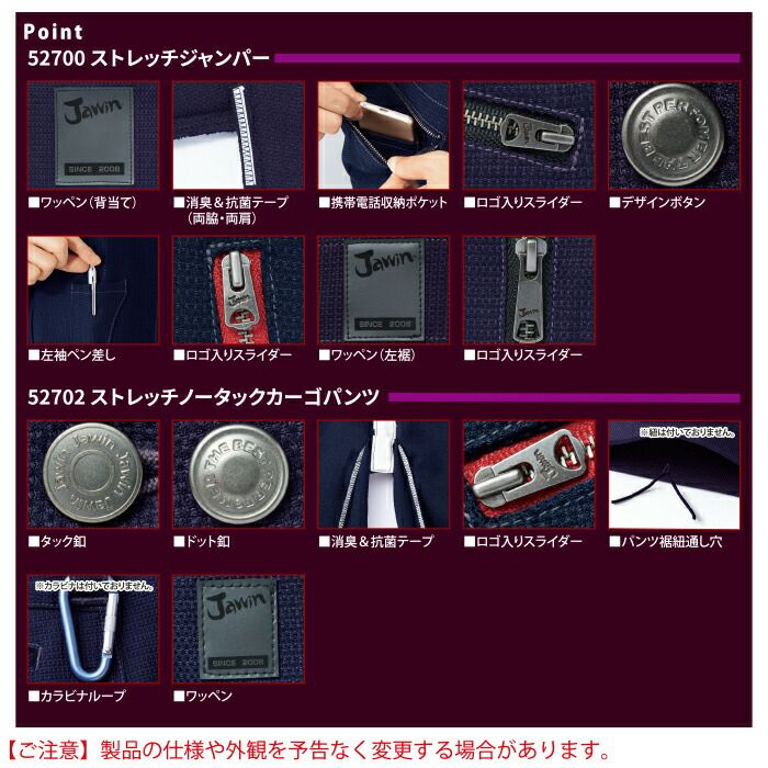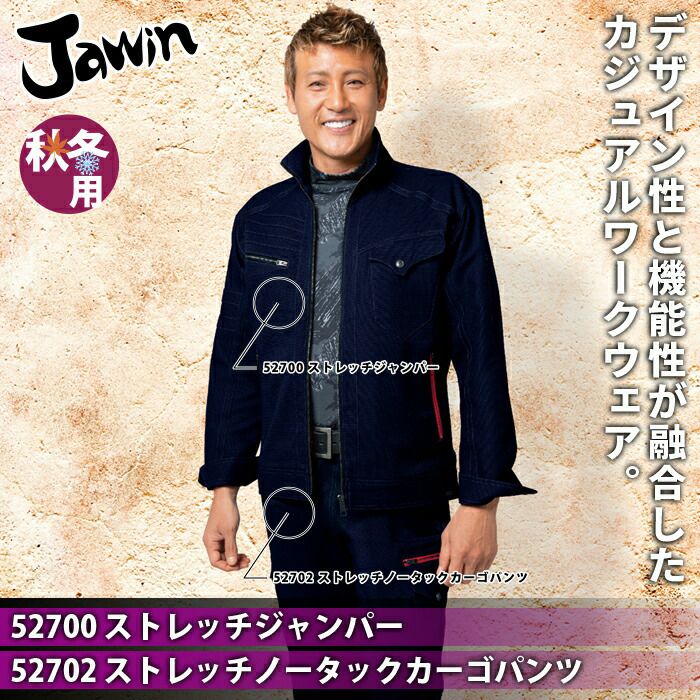 自重堂 JAWIN ジャウィン 作業服 作業着 自重堂 JAWIN ジャウィン 作業服 上下セット 52704 ストレッチ長袖シャツ と 52702 ストレッチノータックカーゴパンツ S-LL 秋冬用 作業着