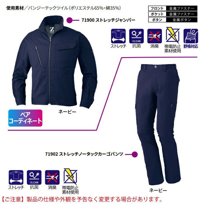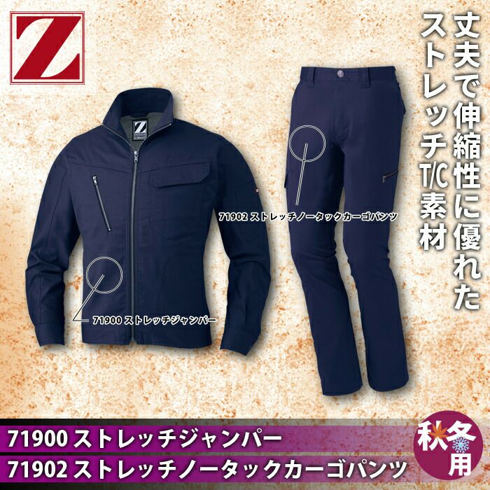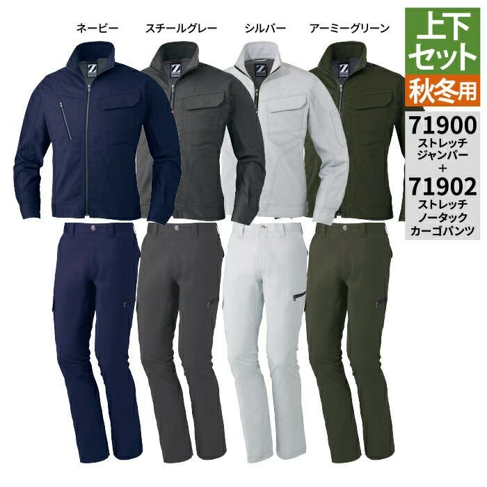 自重堂 作業服 作業着 作業ズボン 自重堂 作業服 上下セット 71900 ストレッチジャンパー と 71902 ストレッチノータックカーゴパンツ SS-LL 秋冬用 かっこいい おしゃれ 作業着