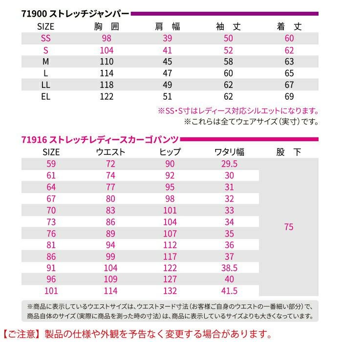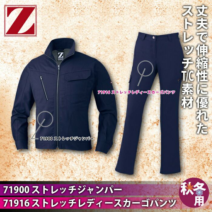 自重堂 作業服 作業着 作業ズボン 自重堂 作業服 上下セット 71900 ストレッチジャンパー と 71916 ストレッチレディースカーゴパンツ SS-LL 秋冬用 かっこいい おしゃれ 作業着