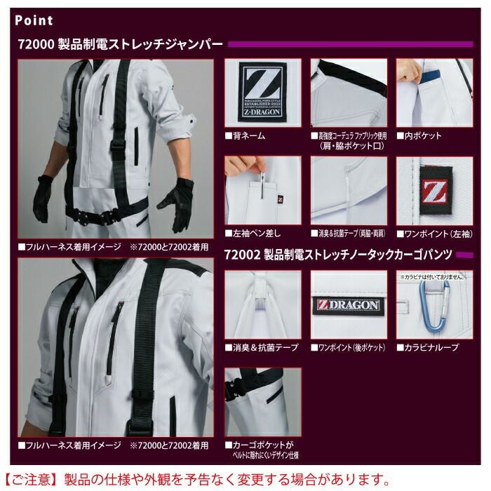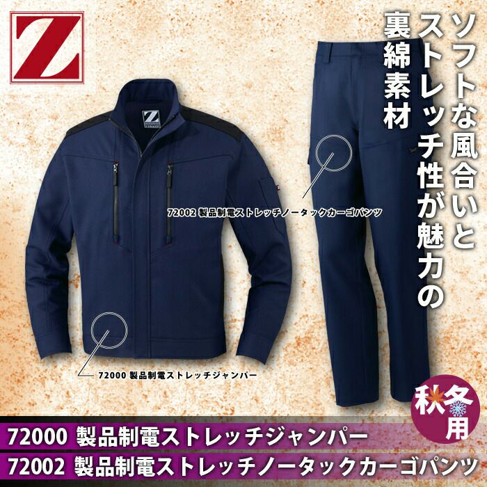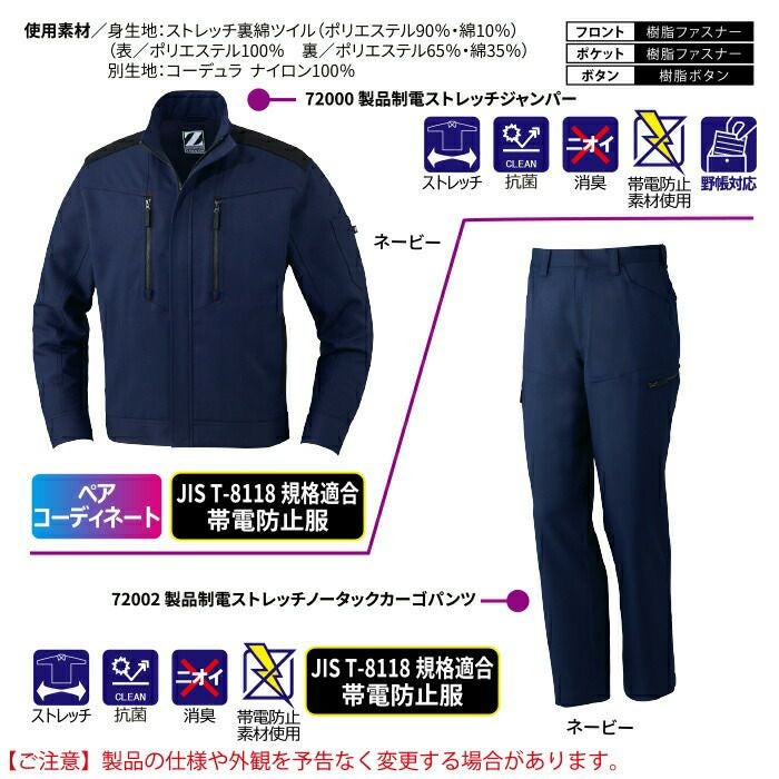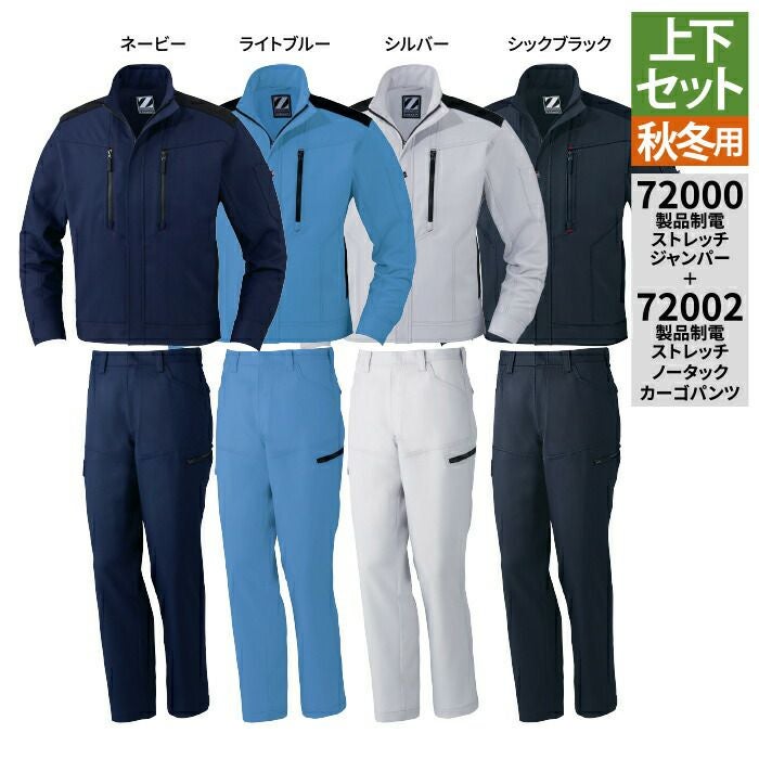 自重堂 作業服 作業着 作業ズボン 自重堂 作業服 上下セット 72000 製品制電ストレッチジャンパー と 72002 製品制電ストレッチノータックカーゴパンツ SS-LL オールシーズン おしゃれ 作業着