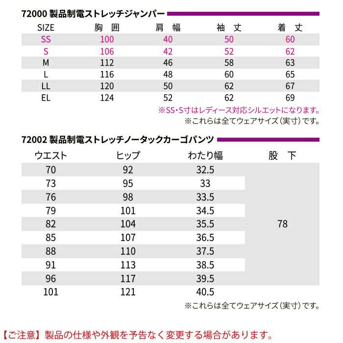 自重堂 作業服 作業着 作業ズボン 自重堂 作業服 上下セット 72000 製品制電ストレッチジャンパー と 72016 製品制電ストレッチレディースカーゴパンツ SS-LL オールシーズン おしゃれ 作業着