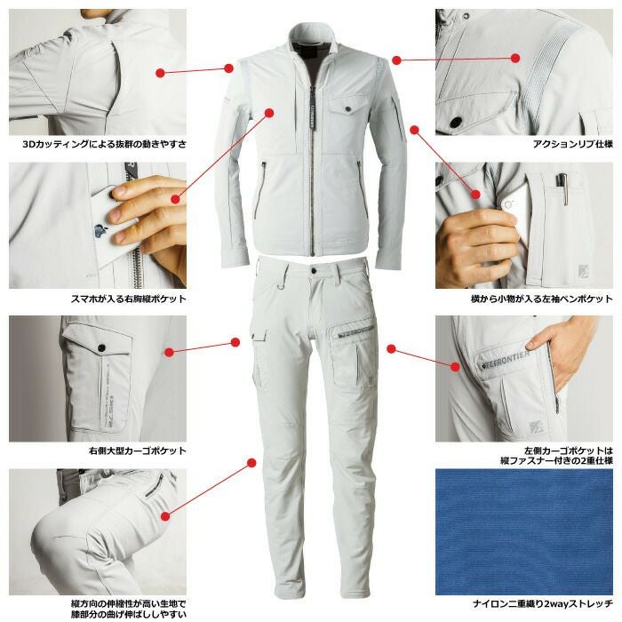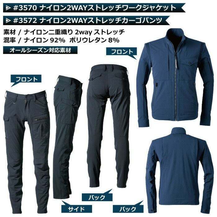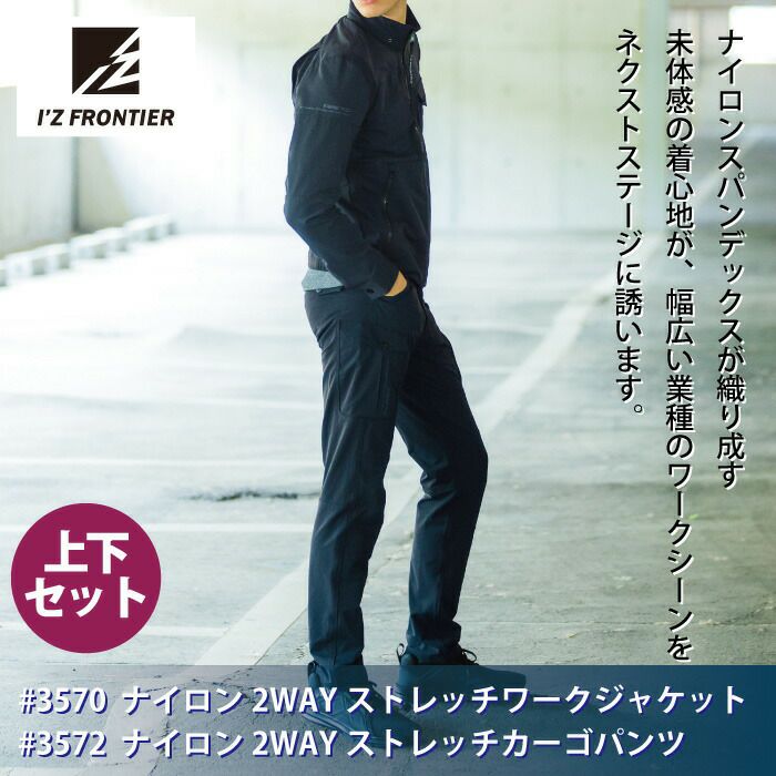 アイズフロンティア 作業服 上下セット 3570 ジャケット と 3572 カーゴパンツ ツイル ストレッチ ナイロン スポーティ UVカット 春夏秋冬