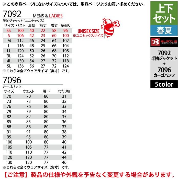 7092半袖ジャケット サイズ