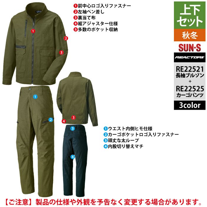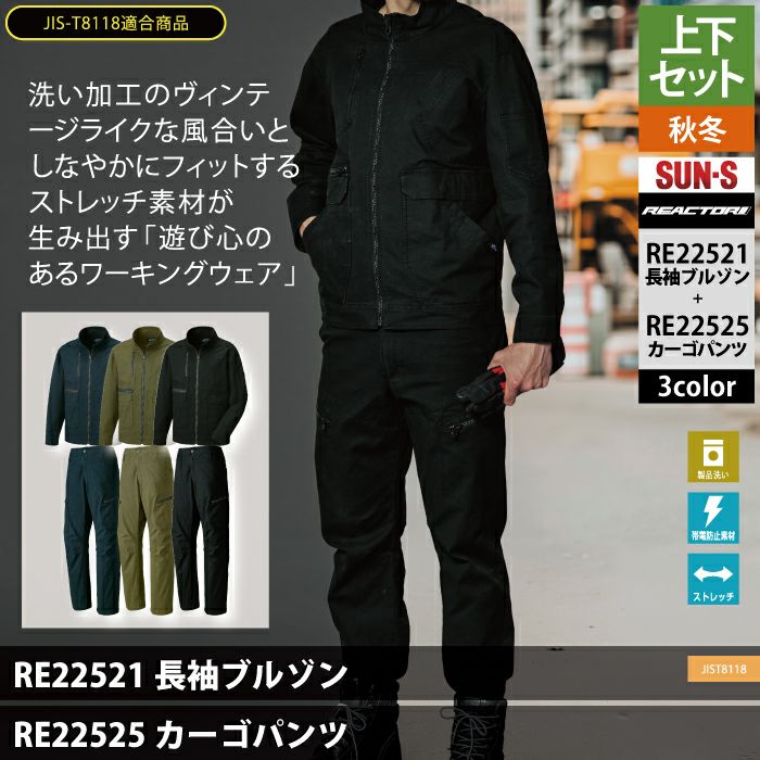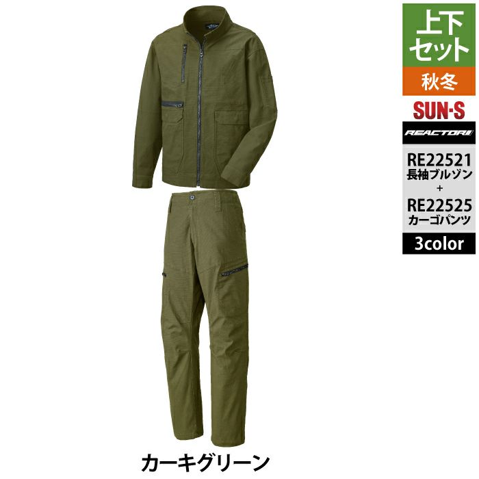 サンエス 作業服 作業着 作業ズボン サンエス 作業服 上下セット RE22521 長袖ブルゾン S-3L と RE22525 カーゴパンツ S-3L ユニセックス 秋冬 作業着 作業ズボン