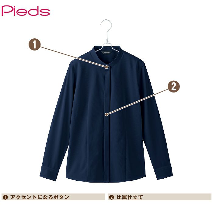 オフィス 事務 ビジネスウェア オフィスウェア ピエ 634231 長袖スタンドカラーブラウス 5号-15号 オールシーズン アイトス Aitoz