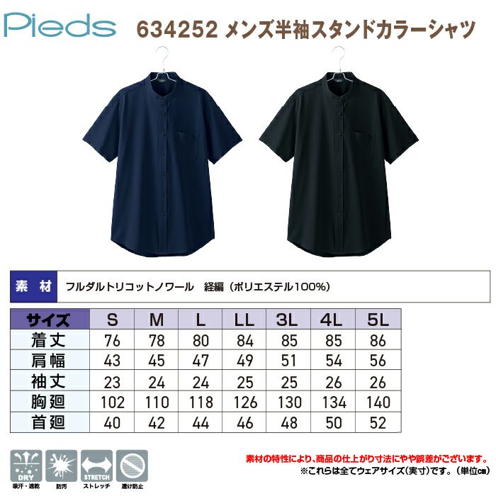 オフィス 事務 ビジネスウェア オフィスウェア ピエ 634252 メンズ半袖スタンドカラーシャツ S-LL オールシーズン アイトス Aitoz