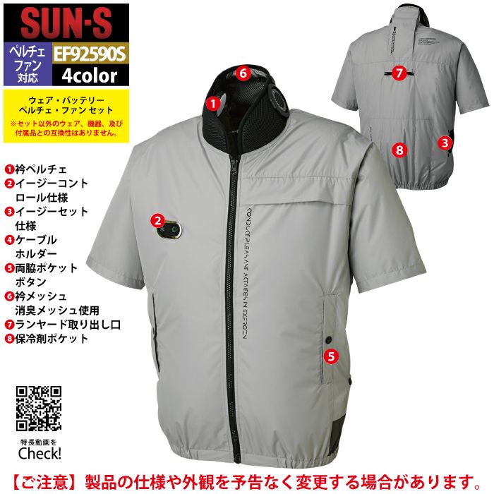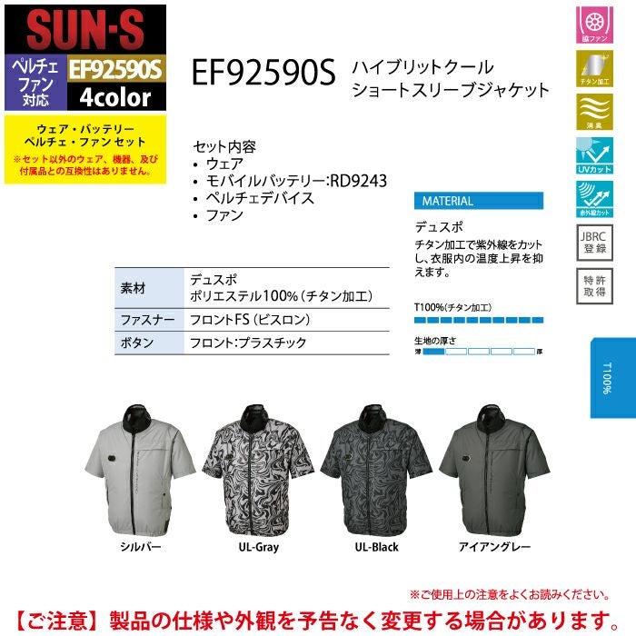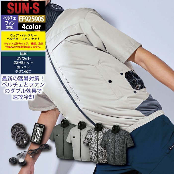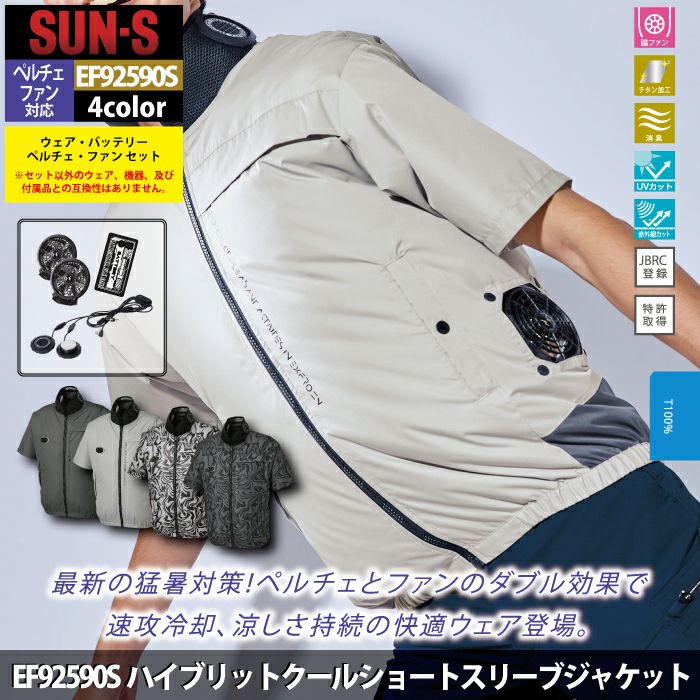 ペルチェ サンエス 作業服 作業着 ペルチェ対応ウェア サンエス 作業服 春夏 EF92590S ハイブリットクールショートスリーブジャケット S-5L 作業着