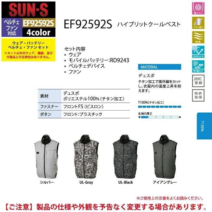 ペルチェ サンエス 作業服 作業着 ペルチェ対応ウェア サンエス 作業服 春夏 EF92592S ハイブリットクールベスト S-5L 作業着