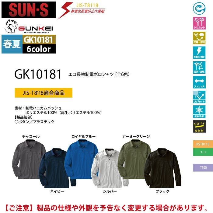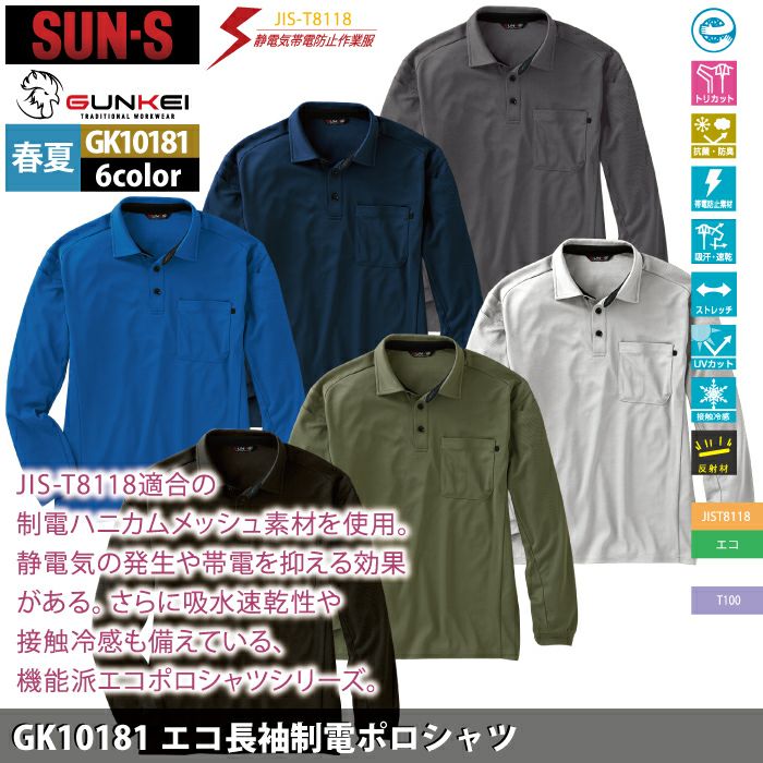 サンエス 作業服 作業着 サンエス 作業服 春夏 GK10181 エコ長袖制電ポロシャツ 6L-8L 作業着