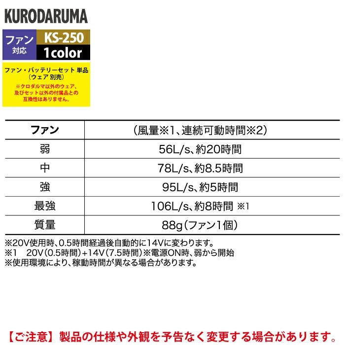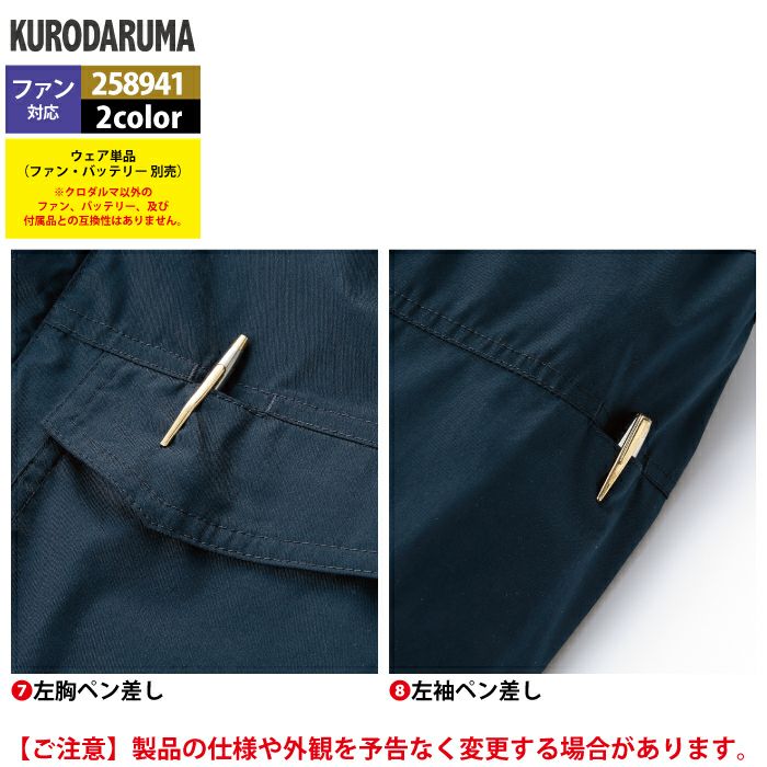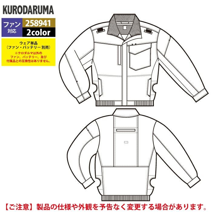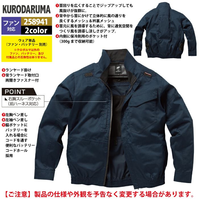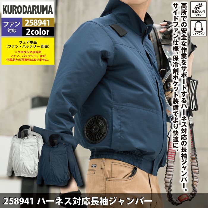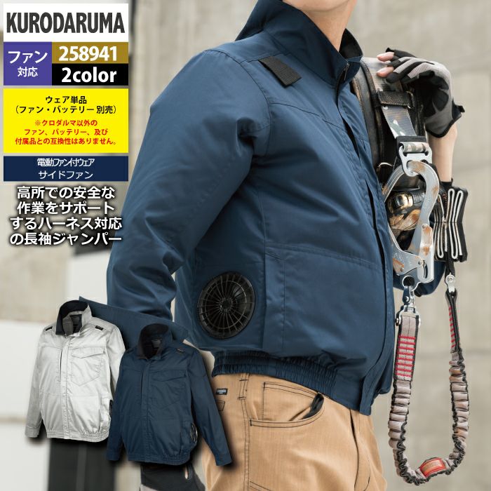 作業服 作業着 電動ファン 熱中症 ファン付きウェア (服のみ) クロダルマ 作業服 春夏 258941 ハーネス対応長袖ジャンパー 7L 作業着