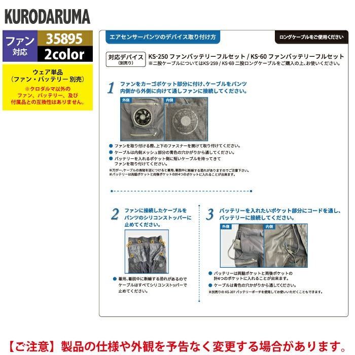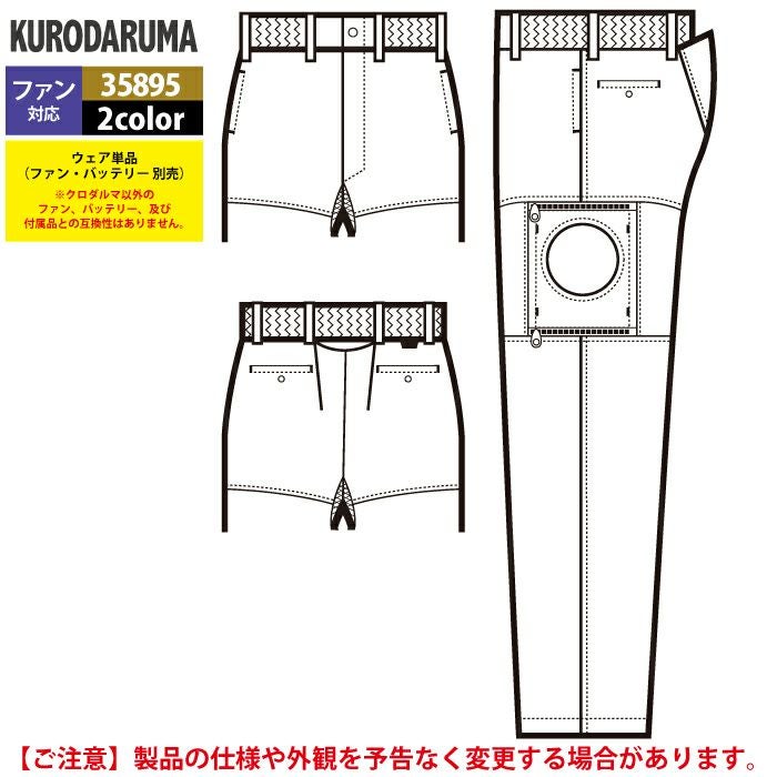 作業服 作業着 電動ファン 熱中症 ファン付きウェア (服のみ) クロダルマ 作業服 春夏 35895 エアーセンサーパンツ S-LL 作業着 作業ズボン