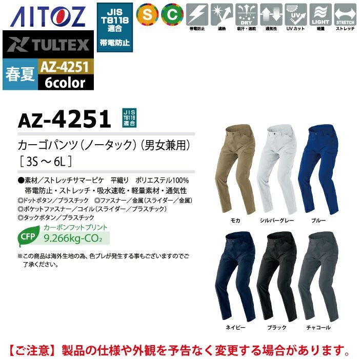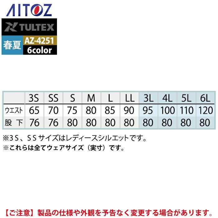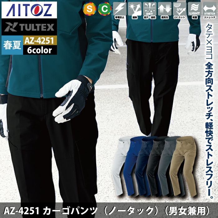 作業服 作業着 作業ズボン アイトス Aitoz 作業服 作業ズボン AZ-4251 カーゴパンツ 3S-LL 春夏用