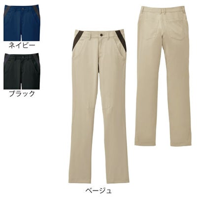 ●オールシーズン用●素材:エアリーストレッチ●混率:ポリエステル100%●男女兼用、帯電防止素材、ストレッチ、形態安定、防汚、 フロント両脇ポケット、バック両ポケット、両脇フレキシブルメッシュ腰回りのフィット感と通気性が抜群、膝を曲げやすい膝タック、ウエストに沿う仕様の後カーブベルト、股下マチ仕様縫い目がないのでツッパリ感軽減、股十字に消臭テープ(デオ・グラフト)、スッキリフォルムの後ポケット、後中心Wベルトループで強度アップ●サイズ:S(ウエスト/65~71、ヒップ/93、股下/78)、M(ウエスト/71~77、ヒップ/97、股下/80)、L(ウエスト/77~83、ヒップ/102、股下/80)、LL(ウエスト/83~89、ヒップ/109、股下/80)、3L(ウエスト/89~95、ヒップ/114、股下/80)、4L(ウエスト/95~101、ヒップ/120、股下/80)、5L(ウエスト/101~107、ヒップ/126、股下/80)●カラー:ベージュ、ネイビー、ブラック