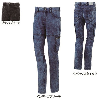 ●関連商品※76100ストレッチ長袖ジャンパー●春夏用●素材:ストレッチデニム●混率:綿68%・ナイロン31%・ポリウレタン1%●ストレッチ、接触冷感、革ラベル(人工皮革)、タックボタン、カラビナループ、マルチポケット、ロゴプリント(後ポケット)、パンツ裾紐通し穴●サイズ:73(ウエスト/73、ヒップ/90、ワタリ幅/28、股下/82)、76(ウエスト/76、ヒップ/92、ワタリ幅/29、股下/82)、79(ウエスト/79、ヒップ/96、ワタリ幅/30、股下/82)、82(ウエスト/82、ヒップ/100、ワタリ幅/31、股下/82)、85(ウエスト/85、ヒップ/104、ワタリ幅/32、股下/82)、88(ウエスト/88、ヒップ/108、ワタリ幅/34、股下/82)、91(ウエスト/91、ヒップ/112、ワタリ幅/35.5、股下/82)、96(ウエスト/96、ヒップ/116、ワタリ幅/37、股下/82)、101(ウエスト/101、ヒップ/120、ワタリ幅/38.5、股下/82)、106(ウエスト/106、ヒップ/124、ワタリ幅/40、股下/82)、112(ウエスト/112、ヒップ/128、ワタリ幅/41.5、股下/82)●カラー:インディゴブリーチ、ブラックブリーチ