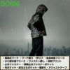 ◇機能:着脱式フード、フード絞り、衿リブ、後身頃裏フリース、ひじ部分裏フリース、ファスナー隠し、反射プリント、止水ファスナー、両胸止水ファスナーポケット、内ポケット、逆玉ぶちポケット、裾絞り、アジャストテープ