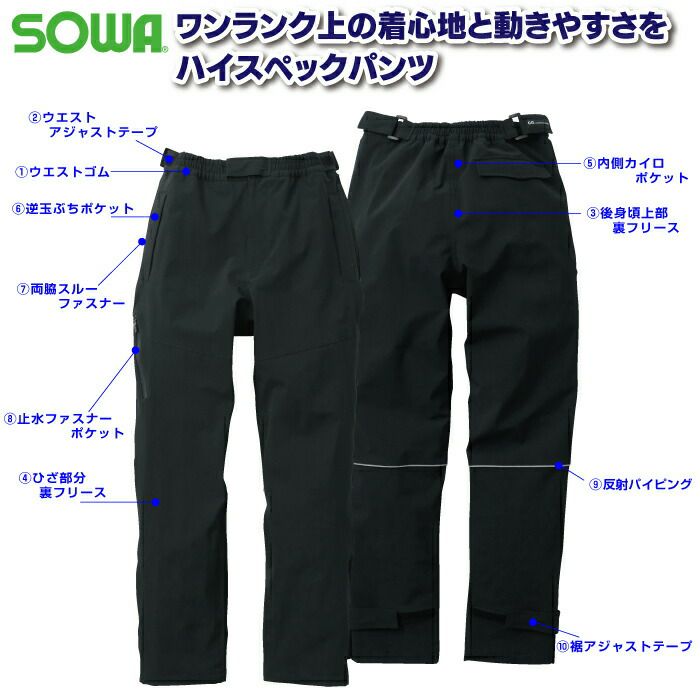 桑和 SOWA 作業服 秋冬用 0284-08 防水防寒カーゴパンツ S-LL