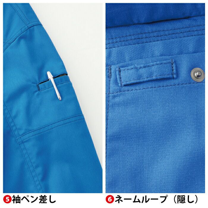 ◇背裏メッシュ・ファスナーポケット・胸二重ポケット(野帳が入る)・胸ペン差し・袖ペン差し・ネームループ(隠し)・袖口ドットボタン・サイドスリット