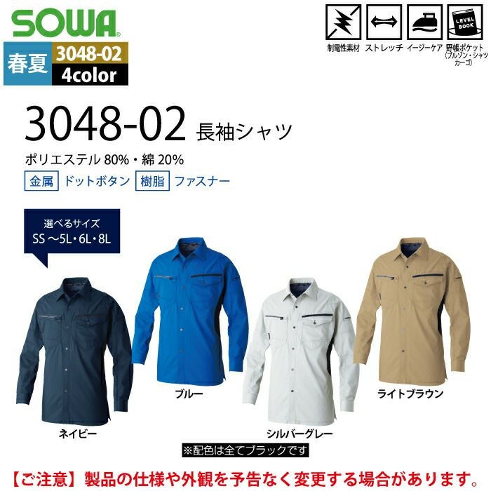 桑和 SOWA 作業服 作業着 作業ズボン 桑和 SOWA 作業服 3048-02 長袖シャツ 8L 作業服 春夏用