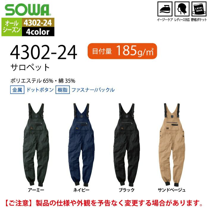 桑和 SOWA 作業服 春夏用 4302-24 サロペット 3L