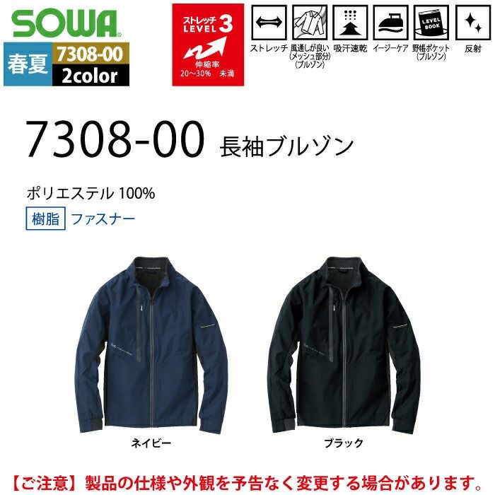 桑和 SOWA 作業服 作業着 作業ズボン 桑和 SOWA 作業服 春夏用 7308-00 長袖ブルゾン 3L