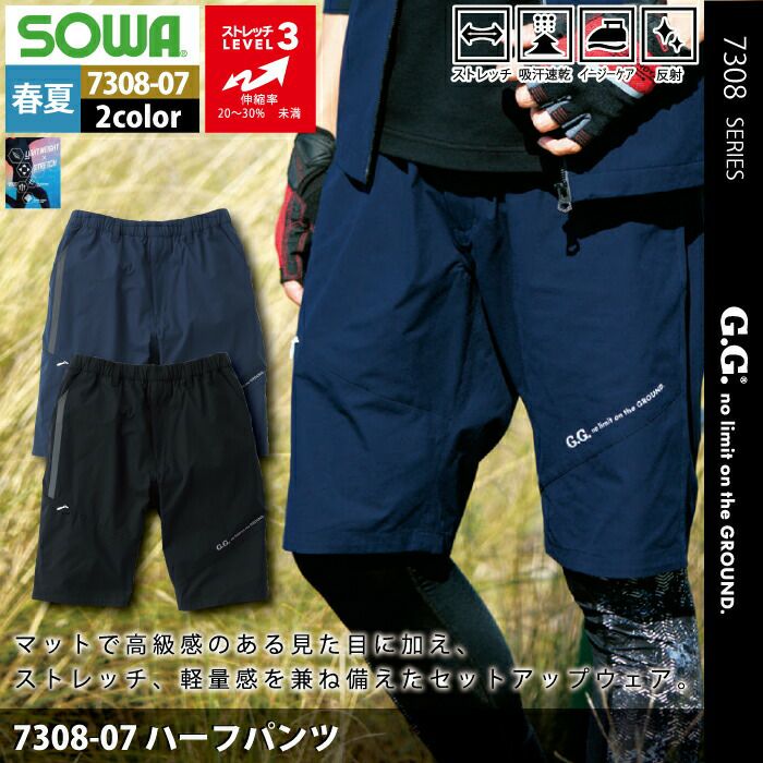 桑和 SOWA 作業服 作業着 作業ズボン 桑和 SOWA 作業服 春夏用 7308-07 ハーフパンツ S-LL