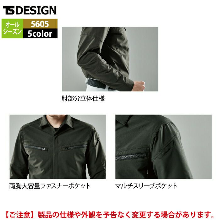 藤和 TSDESIGN 作業服 作業着 作業ズボン 藤和 TSDESIGN 作業服 オールシーズン 5605 ロングスリーブシャツ 3L-4L