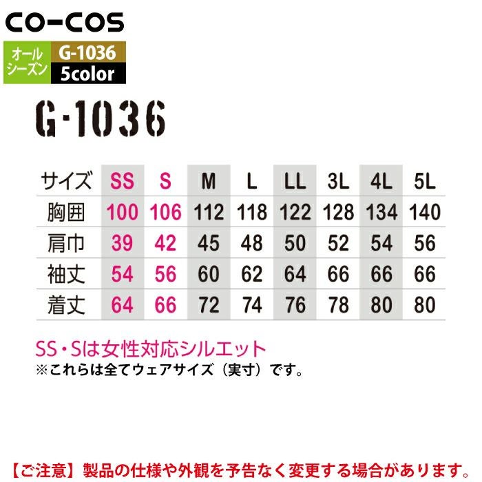 コーコス 作業服 作業着 作業ズボン アウトドア 春夏用 コーコス G-1036 フィールドジャケット SS-LL