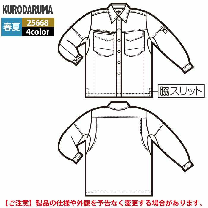 クロダルマ 作業服 春夏用 25668 長袖シャツ 6L