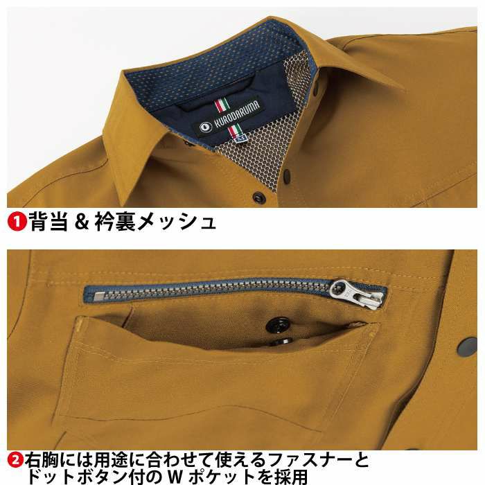 ◇機能:吸汗速乾・制電・リラックスカット・ノーフォーク・右胸には用途に合わせて使えるファスナーと内ボタンのWポケットを採用・左右脇ポケットは物が落ちにくい逆玉仕様・左胸ペン差し・左袖ペン差し・背中のムレを快適にするノーフォークメッシュ・脇スリット・背当衿裏メッシュ