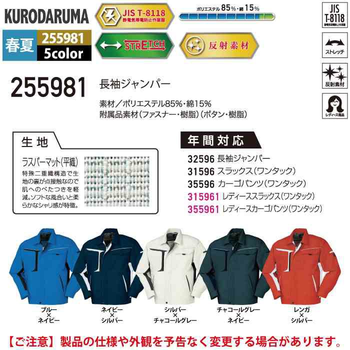 クロダルマ 作業服 春夏用 255981 長袖ジャンパー 3L-5L