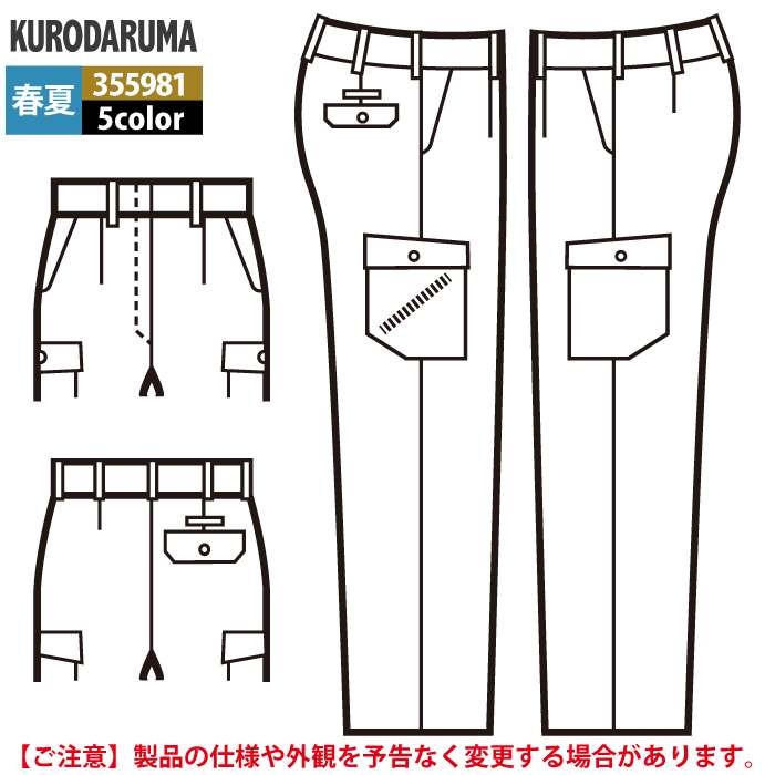 クロダルマ 作業服 春夏用 355981 レディースカーゴパンツ 61-80