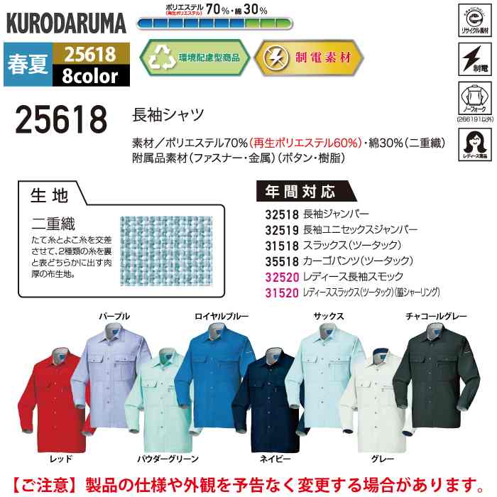クロダルマ 作業服 春夏用 25618 長袖シャツ S-5L