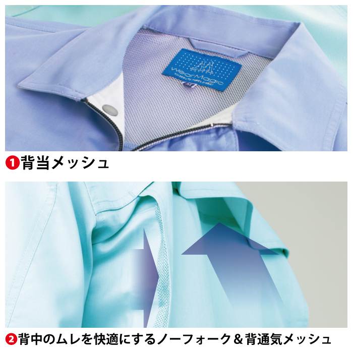 ◇背当メッシュや通気フラップを採用・夏の爽快な着心地を提案する半袖ジャンパー。