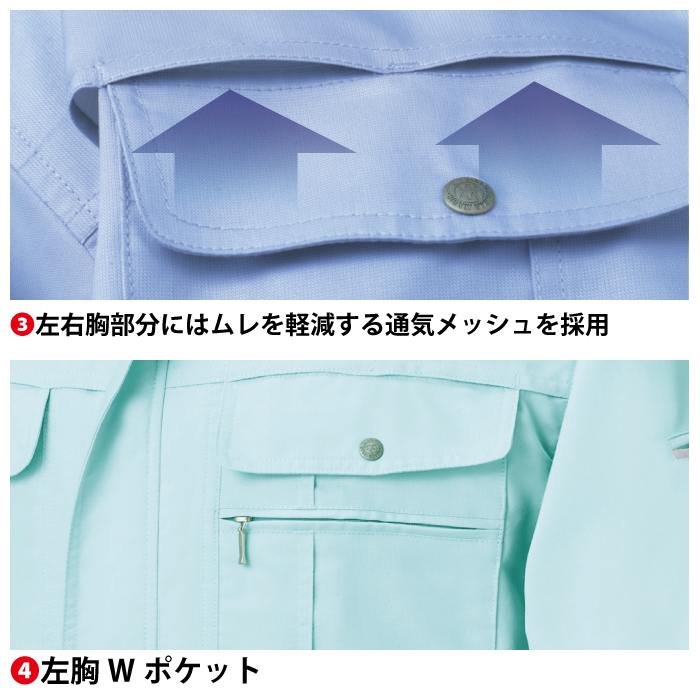 ◇機能:リサイクル素材・制電・リラックスカット・ラグランスリーブ・背当メッシュ・胸元のムレを快適にする通気フラップ・右脇ポケットファスナー付・左袖ペン差し・背中のムレを快適にする通気フラップ