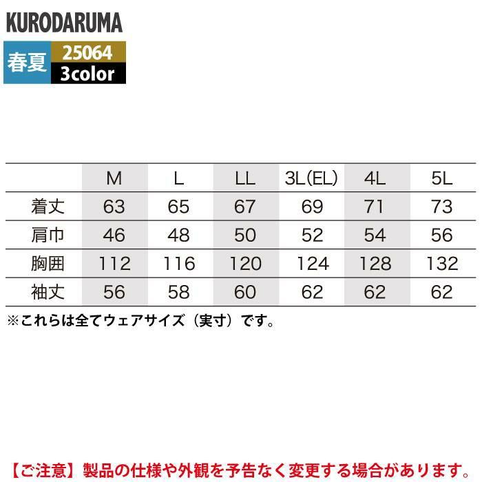 クロダルマ 作業服 春夏用 25064 長袖ジャンパー M-LL