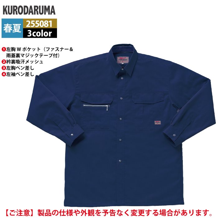 クロダルマ 作業服 春夏用 25508 長袖シャツ S-LL