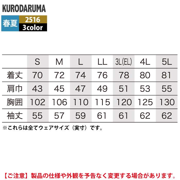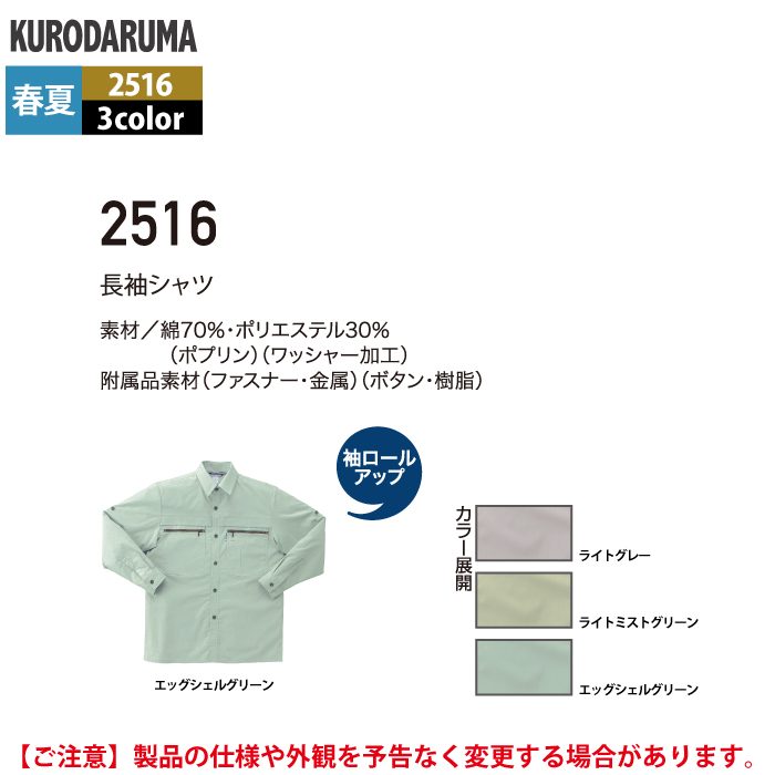 クロダルマ 作業服 春夏用 2516 長袖シャツ S-LL