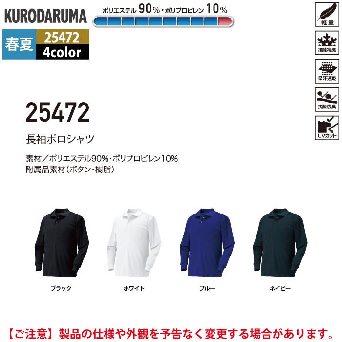 クロダルマ 作業服 春夏用 25472 長袖ポロシャツ S-LL
