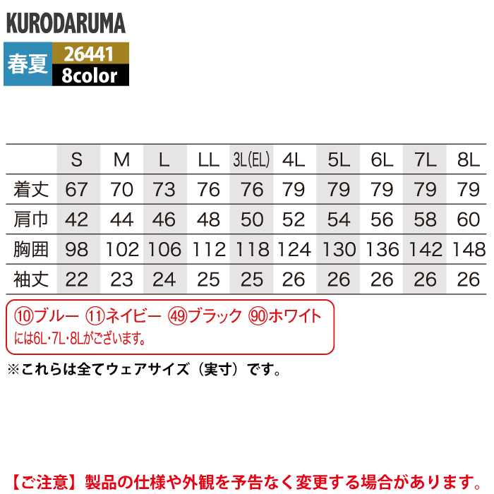 クロダルマ 作業服 春夏用 26441 半袖ポロシャツ 3L-5L