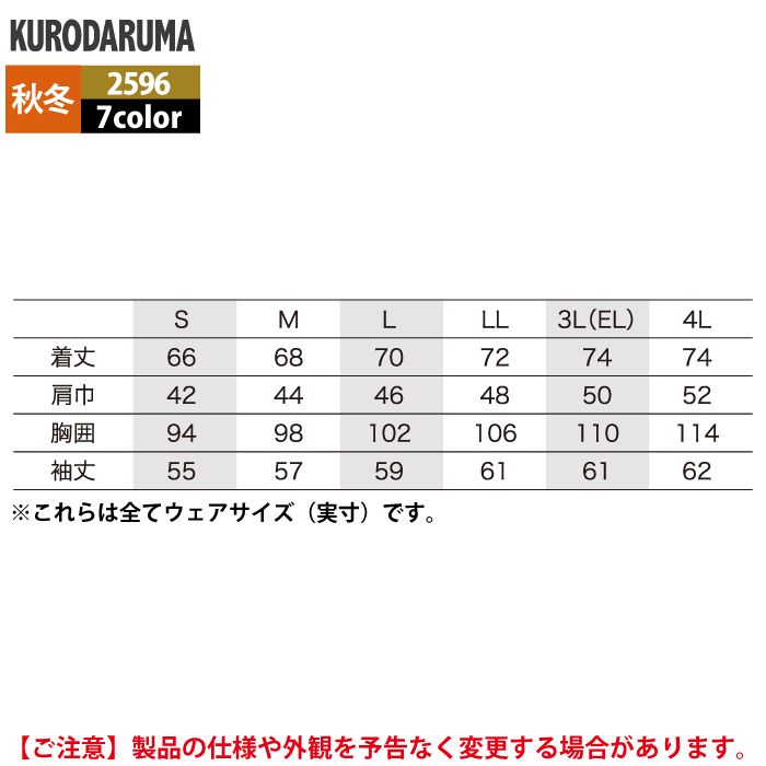 クロダルマ 作業服 春夏用 2596 長袖ポロシャツ S-LL