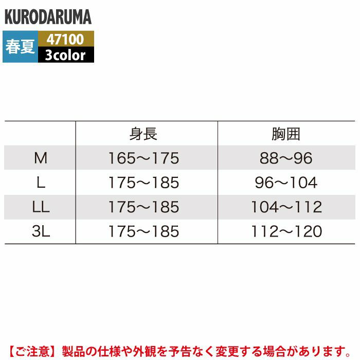作業服 作業着 クロダルマ 作業服 インナー 春夏用 47100 シームレス長袖アンダーレイヤー 3L