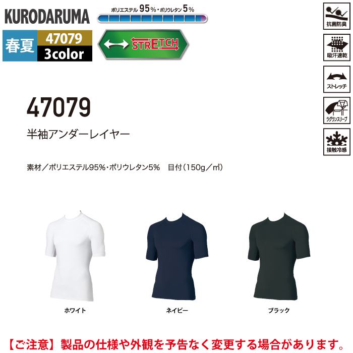 作業服 作業着 クロダルマ 作業服 インナー 春夏用 47079 半袖アンダーレイヤー M-LL